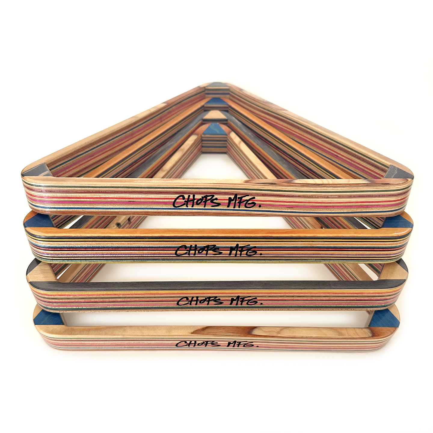 Pool triangle handcrafted from recycled skateboards. Laser engraved logo.